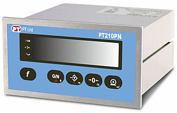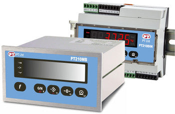 | The PT210 is a smart indicator for industrial weighing process applications offering powerful PLC integration facilities; standard serial ports such as RS-232C, RS-485, up to 4 digital inputs and 5 relay outputs. The PT210 Series is approved by Weights & Measures Authorities for use in Accuracy Class III applications with 10000 scale intervals in accordance with OIML R76. The PT210 is available in a range of versions to connect by various fieldbus protocols such as Ethernet, Modbus, Profibus, Profinet, CANopen and also a version with analogue output. Powerful calibration options including vCal, Electronic calibration without test weights supporting fast easy setup and service. The PT210 features adaptive filtering for fast settling, high display resolution and a speed of up to 1600 conversions per second. It’s small size aluminum body is perfect for panel installations, providing a big display and requiring little space on control panels. The instrument has a stainless steel front for use in harsh environments. INTEGRATION
